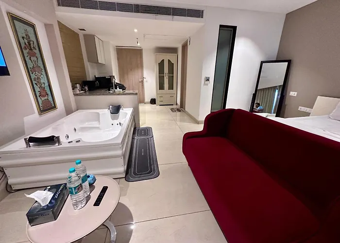 Luxury Studios Key 4的住客可用屋顶游泳池。该公寓离Badshahpur Fort大约1.7公里。 它距离Sai Ka Angan7公里。德里英迪拉•甘地国际机场距离这套公寓30公里。